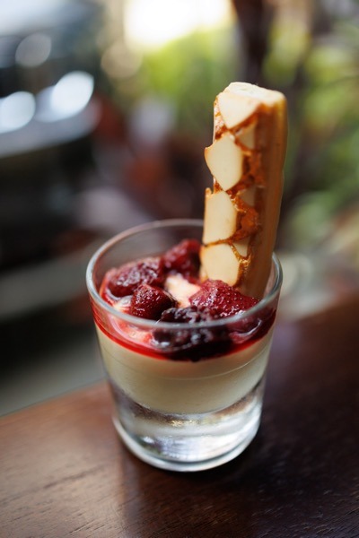 Para encerrar a experiência, a sobremesa traz outro clássico italiano: o Zabaione. Preparado com gemas, açúcar e vinho Marsala, o creme é servido morno e acompanhado por frutas vermelhas frescas. Leve e aerado, finaliza a refeição com elegância. Como pede os almoços do norte da Itália.